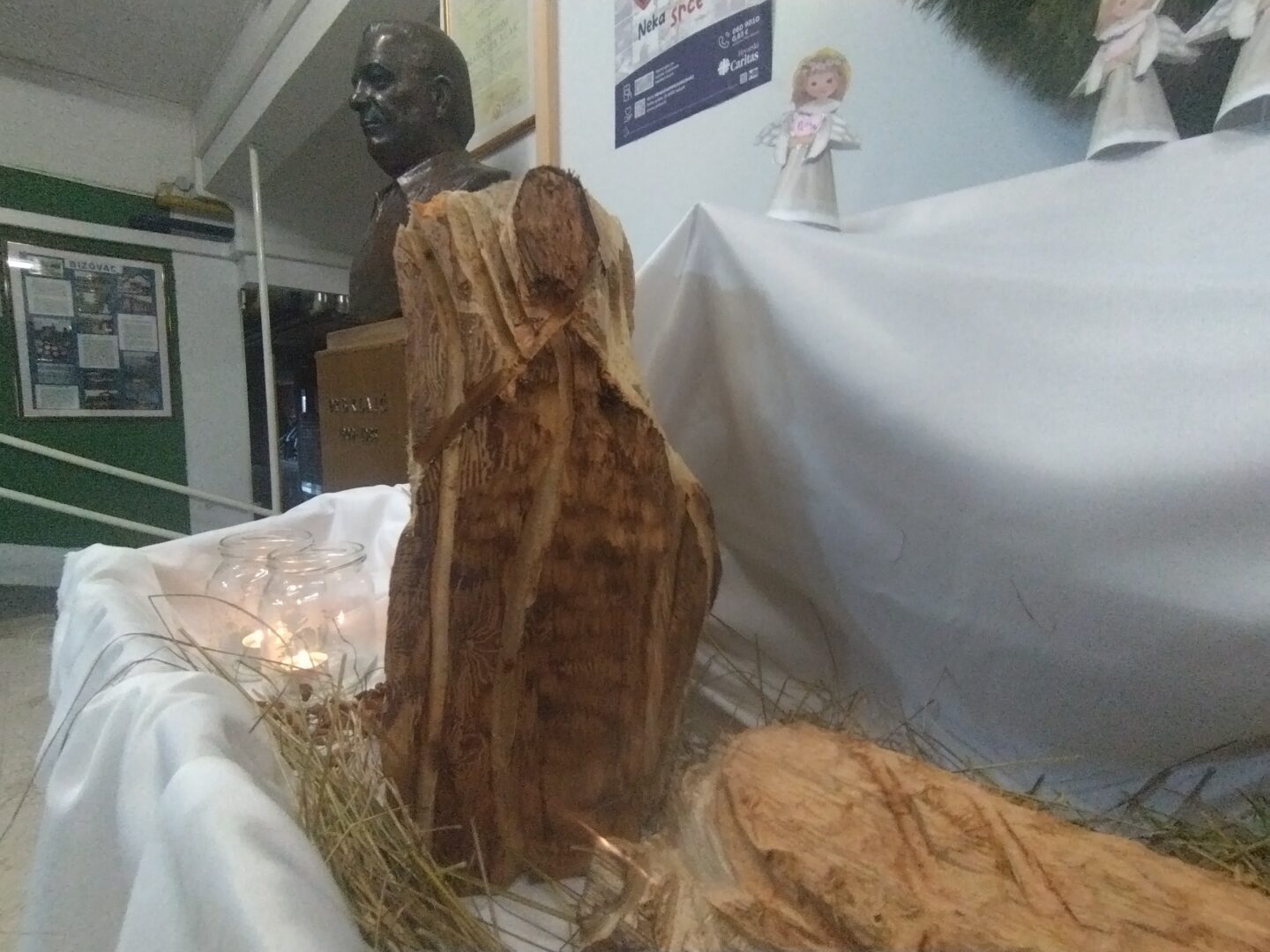 Učenice naše škole, Isabella i Hana s vjeroučiteljem Slavenom Školkom, nastavnicom Katarinom Zeko, vjeroučiteljicom Marinom Školka te učenicima prvog razreda, ovog su Božića s puno ljubavi i kreativnosti izradili jaslice koje su ukrasile našu školu. Kroz zajednički rad, djeca su naučila o važnosti božićnih običaja, a ujedno su i pokazali svoj talent za likovnu i rukotvoriteljsku umjetnost.