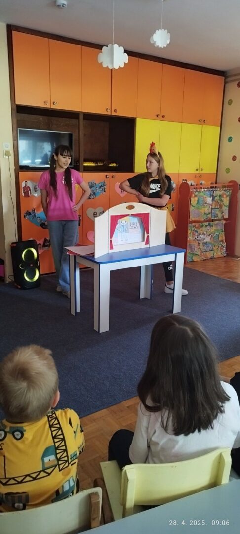 Mjesec dječje knjige zaokružen je gostovanjem dramske grupe Dramolet u Dječjem vrtiću Maslačak. Učenice Stella, Iva i Tia izvele su igrokaz za najmlađe, a Marta je predstavila svoj autorski rad Pas Leo u kamišibaj tehnici. Na kraju susreta učenice su s djecom iz vrtića odigrale nekoliko dramskih igara koje se inače koriste i u školskim radionicama.