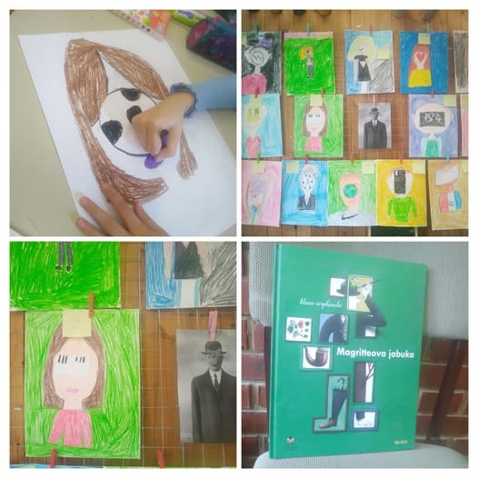 U četvrtom razredu, radionica je bila temeljena na slikovnici Magritteova jabuka autora Klaasa Verplanckea. Učenici su istraživali život i rad slikara Renéa Magrittea te se upoznali s pojmom nadrealizma, umjetničkog pravca u kojem je stvarao. Posebno su se posvetili slici Sin čovjeka, koja je poslužila kao inspiracija za izložbu u holu škole. Na kraju radionice, učenici su osmislili kratke dijaloge između predmeta i svojih autoportreta.